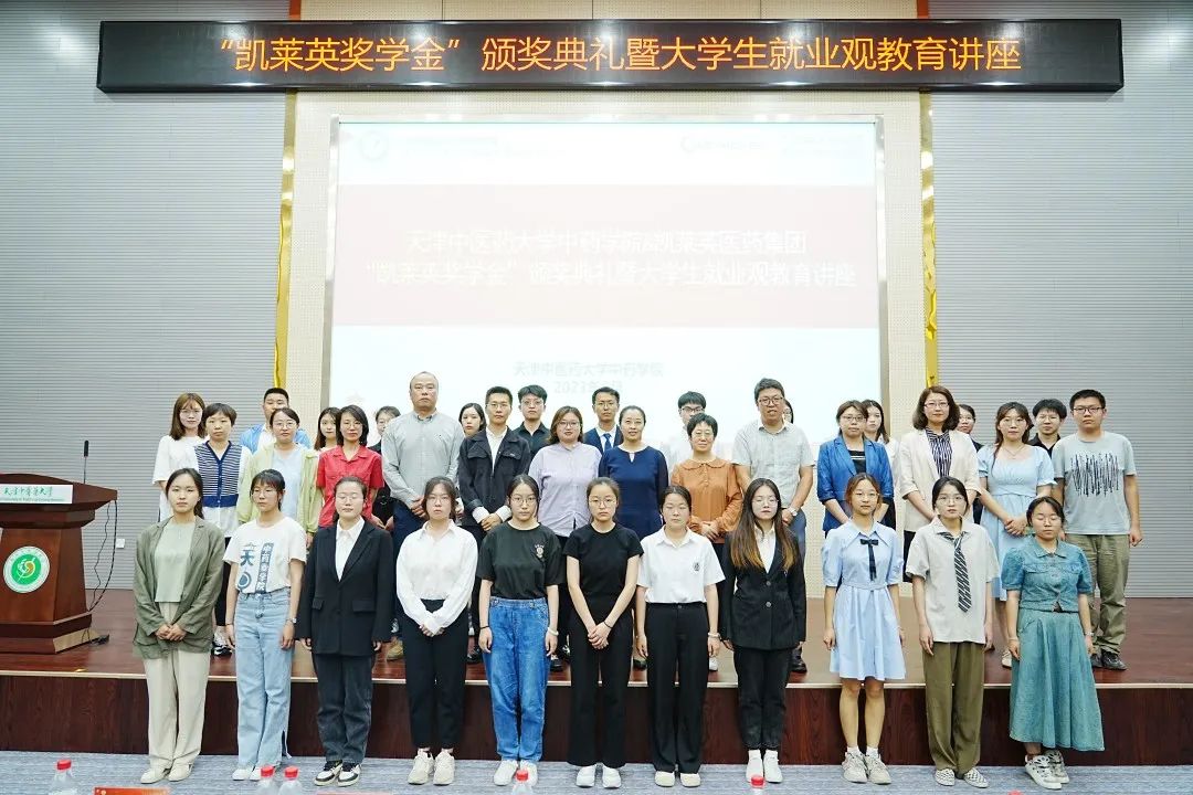 为强化校企多维协同育人模式,深化产教融合、供需对接,培养高素质中医药人才,发挥优秀学生榜样领航作用,5月25日,中药学院“凯莱英奖学金”颁奖典礼暨大学生就业观教育讲座在天津中医药大学求真报告厅举行。