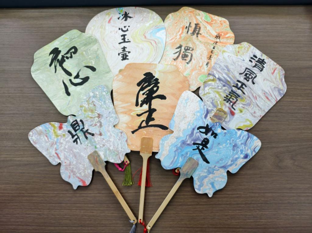 在书写环节,师生们以“清正廉洁”“淡泊明志”“药香育德”等为主题,在扇面上题写廉洁格言警句。笔墨之间,既展现了书法艺术的魅力,也表达了大家对廉洁品格的追求。