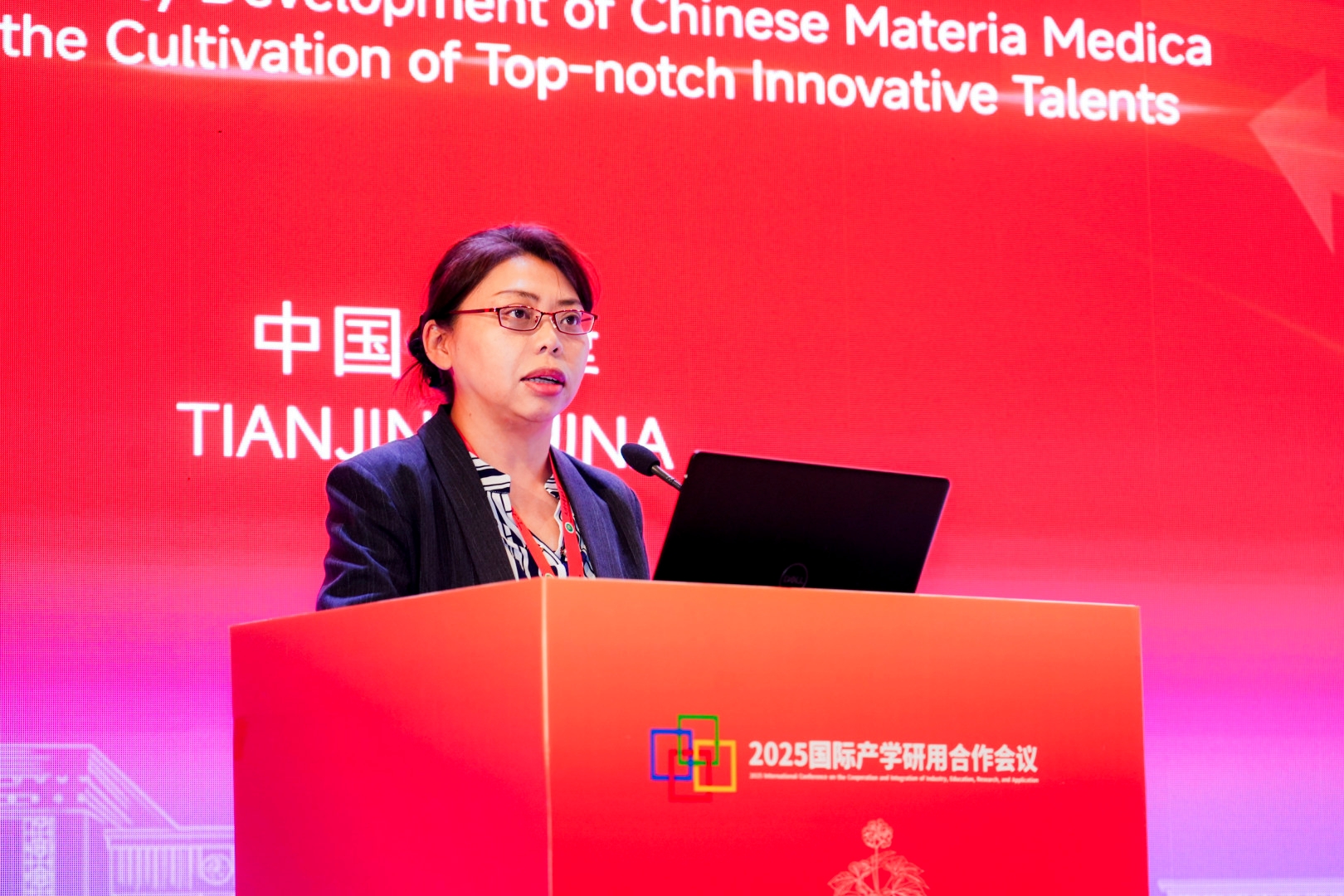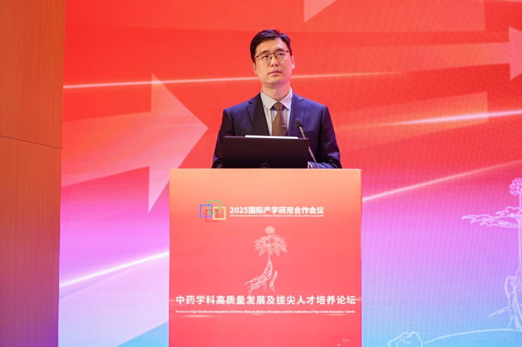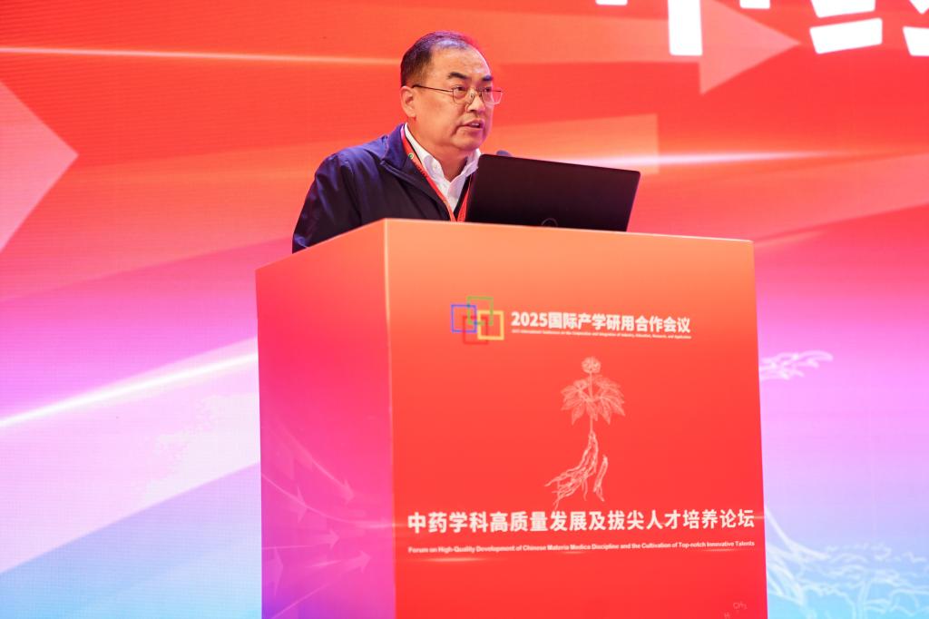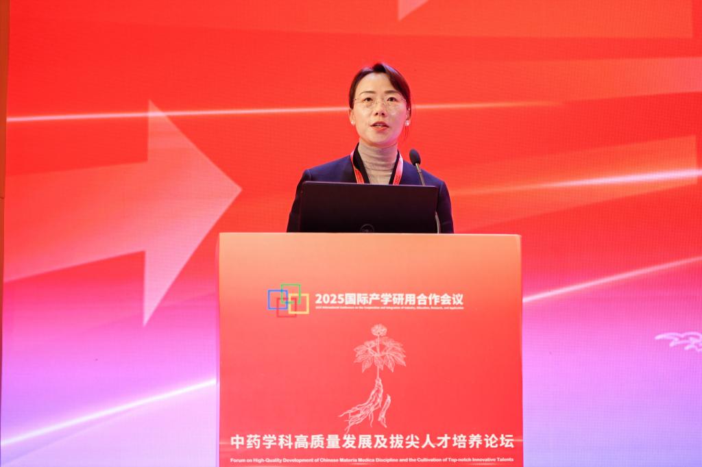天津中医药大学校长高秀梅教授向大会致辞。她首先向莅临本次大会的各位领导、专家学者、各界朋友表示诚挚的欢迎,向中药学院全体师生员工和海内外校友表示热烈的祝贺,向四十年来为中药学院建设发展付出心血与智慧的老专家、离退休老同志、全体教职员工致以崇高的敬意。她指出,中药学院从1985年建院之初的艰苦创业,到如今的师资力量雄厚、科研成果丰硕、育人成效显著,凝聚着一代代中药人的智慧与汗水,见证了中国中医药事业发展的铿锵步伐。一直以来,中药学院始终面向国家重大战略需求和人民健康需要,在中药资源保护与利用、中药质量标准化、中药新药研发等领域取得了一系列突破性成果。从参与国家重大新药创制专项,到推动中药国际化进程;从服务地方经济发展,到助力脱贫攻坚和乡村振兴,学院始终将论文写在祖国大地上,把成果应用在人民健康事业中。她指出,当前学院正处在中医药发展天时、地利、人和的大好时机。党的十八大以来,以习近平同志为核心的党中央高度重视中医药事业发展,作出了一系列重要部署。党的二十届四中全会,指出了一体推进教育科技人才发展,推动科技创新和产业创新深度融合等一系列重要决策部署,为高校未来的建设发展锚定了航向。她对中药学院的未来发展提出三点希望:一是要坚持立德树人根本任务,构建高水平人才培养体系。二是要聚焦国家重大战略需求,提升科技创新能力。三是要深化国际交流合作,推动中医药走向世界。她希望中药学院以建院40周年为新的起点,继承优良传统,锐意改革创新,加快建设特色鲜明、国内一流、世界知名的高水平中药学院,为学校“双一流”建设作出新的更大贡献,为中医药事业传承创新发展书写更加绚丽的本草华章。
