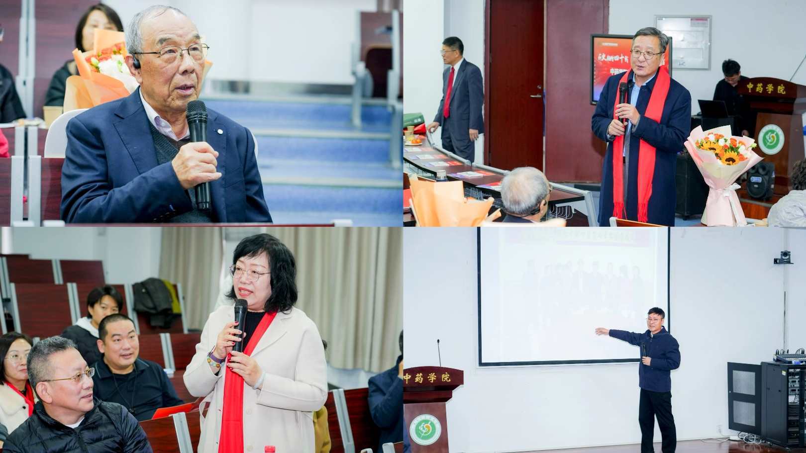 会上,学院杰出校友代表陕西中医药大学副校长孙静教授、兄弟院校学院领导代表北京中医药大学中药学院党委书记傅骞、海外合作院校英国诺丁汉大学药学院院长Barrie Kellam先后致辞,纷纷表达了对中药学院建院40周年的热烈祝贺与合作共赢的美好愿景。