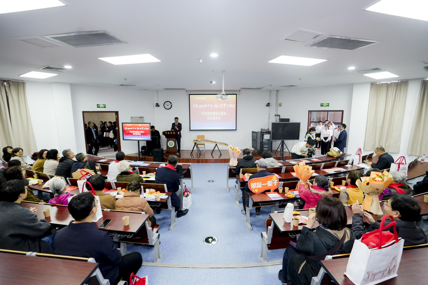 会议结束后,与会的老领导、退休教师、校友移步中药学院,参加了以《薪火相传四十载 同心筑梦启新程》为主题的校友座谈会。座谈会由中药学院原副院长何永志教授主持。会上,中药学院学生合唱团献上了合唱《世界赠予我的》,古筝独奏《茉莉芬芳》等精彩节目。老校友、老教师们欢聚一堂,畅叙情谊,追忆往昔峥嵘岁月,并为学院未来的发展积极建言献策。