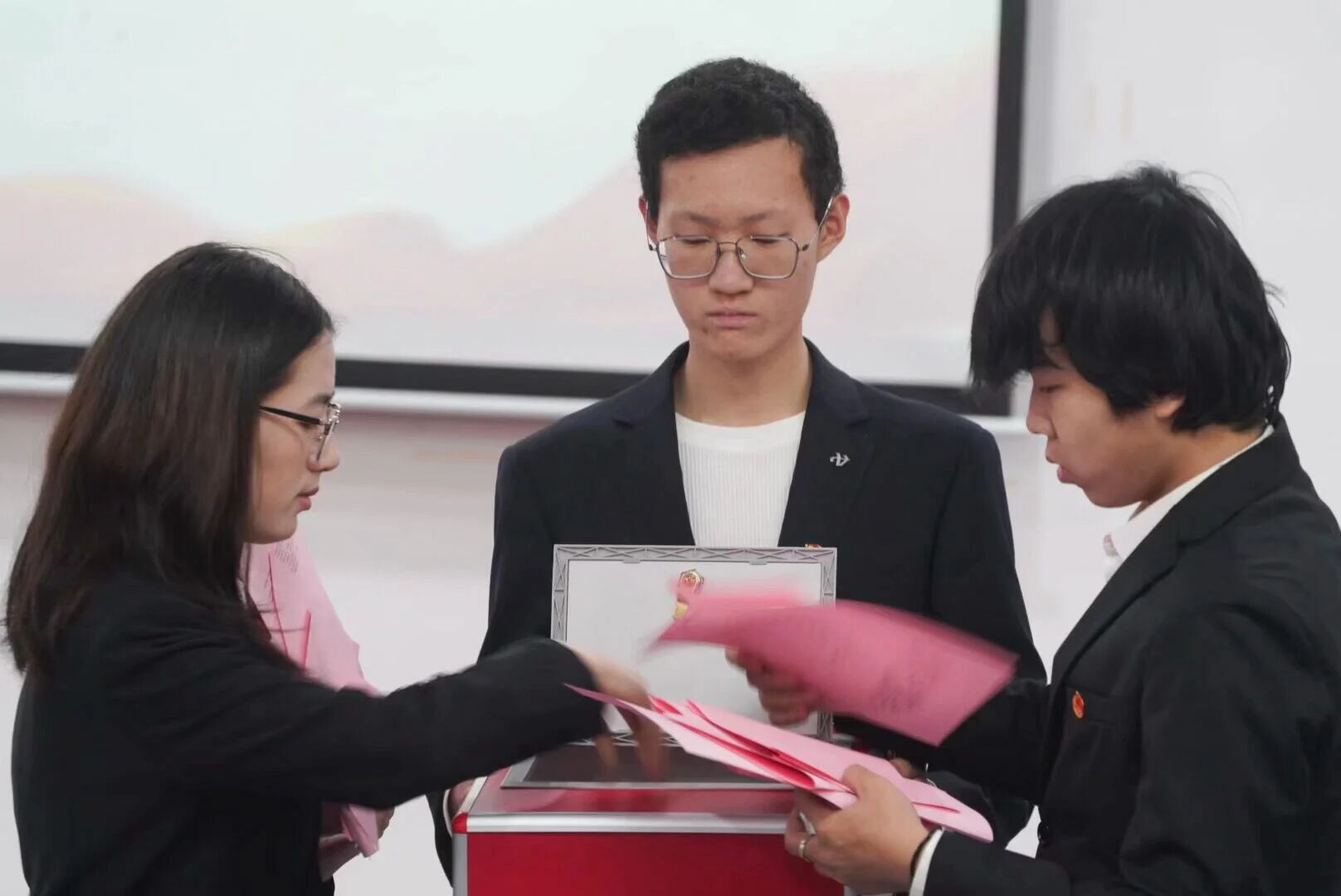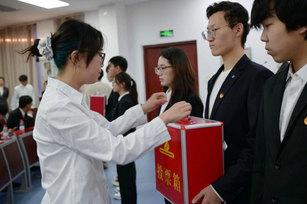 在总监票人王莉蓉同志的主持下,通过民主选举产生了王诗妍、王新慧、伏禹霖等7名同志组成新一届团委委员会。选举产生王贞淇、王泽雨、王诗妍等19名同志出席共青团天津中医药大学第六次代表大会。