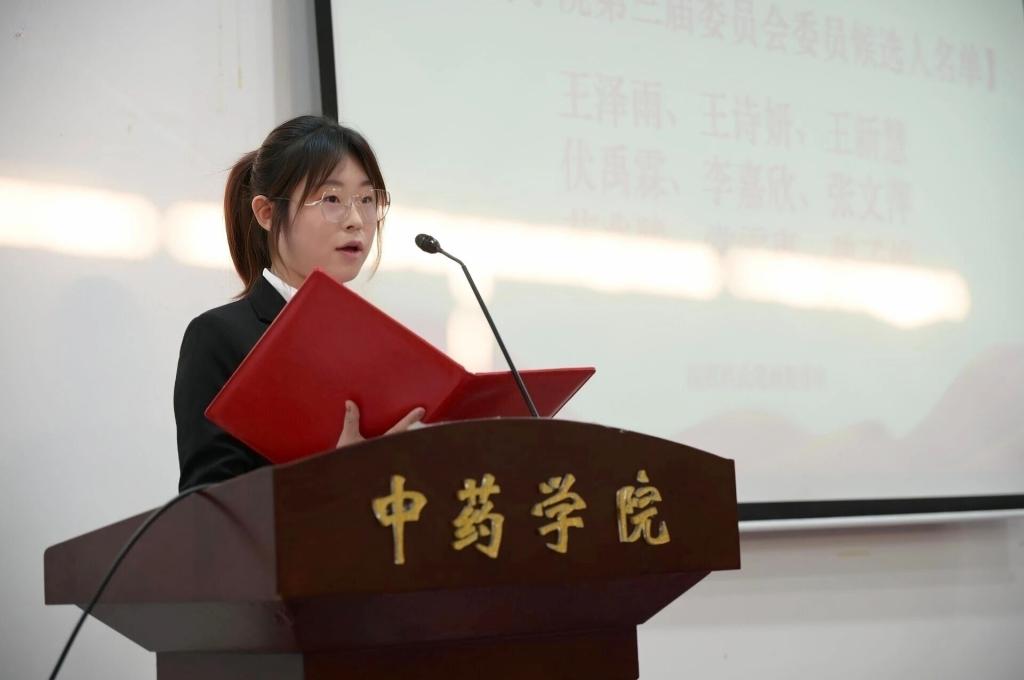 团心向党筑根基,青春奋进续华章。2025年12月2日,共青团天津中医药大学中药学院第三次代表大会在远志园乙201隆重召开。天津中医药大学团委书记张晶、中药学院党委副书记王琦、青年教师及学生代表出席会议。本次大会由中药学院团委副书记王诗妍同志主持。