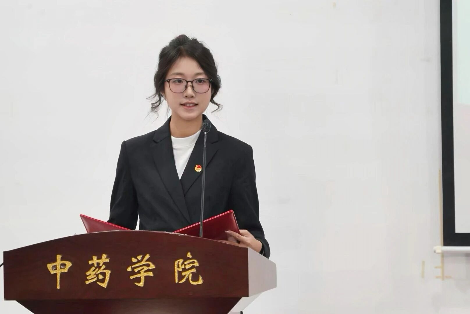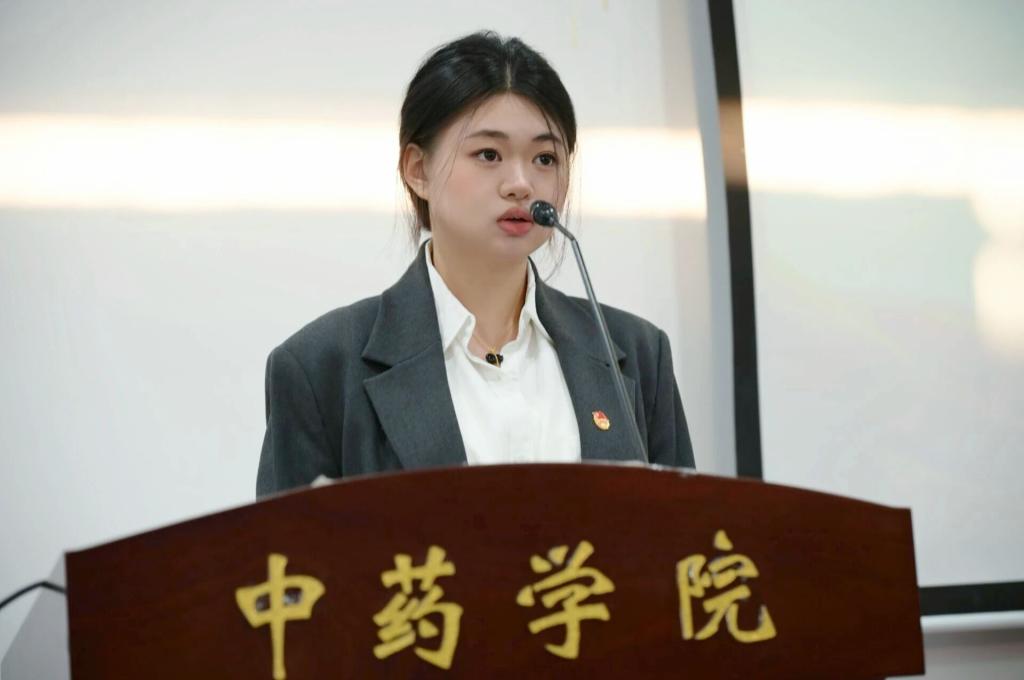 随后,中药学院第41届学生会执行主席伏禹霖同志代表学生会祝贺大会召开。他承诺,学生会将秉持“服务同学成长,助力学院发展”的宗旨,以更饱满的热情与更务实的作风开展工作,并号召全体团员青年凝聚在团组织周围,为学院发展注入青春动能。