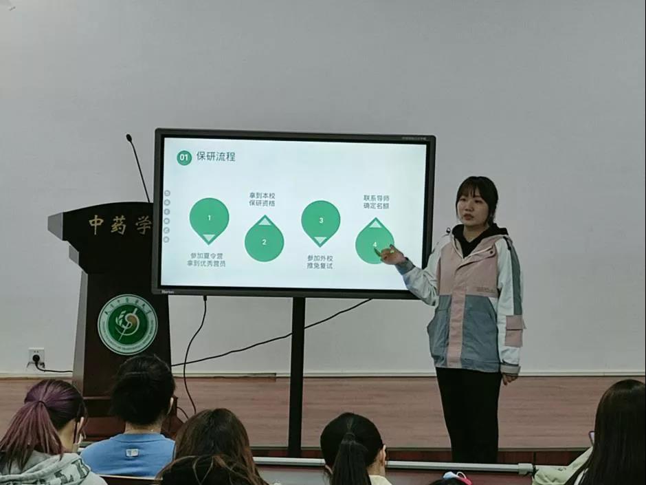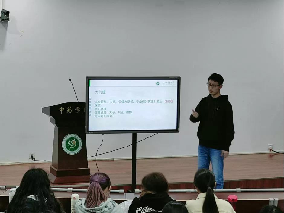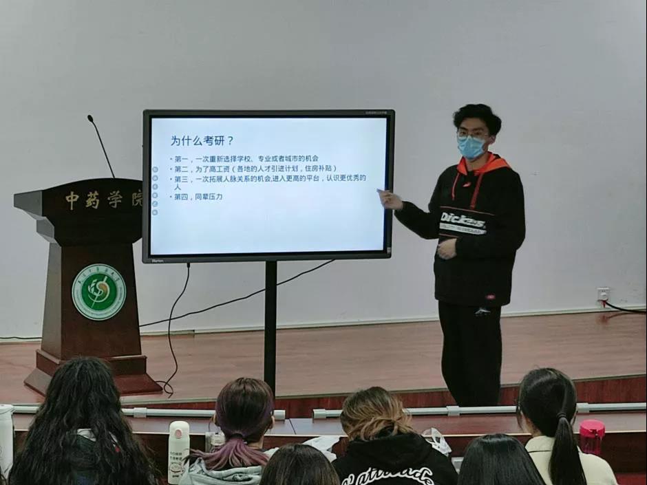 为进一步加强中药学子对保研、考研的了解,明确考研目标,提高考研热情,掌握相关技巧,解决备考问题,2021年4月5日晚,中药学院学生中药党支部邀请了5名成功保研及考研的2021届毕业生在中药学院阶梯教室组织开展了第二场《保研考研经验分享会》。