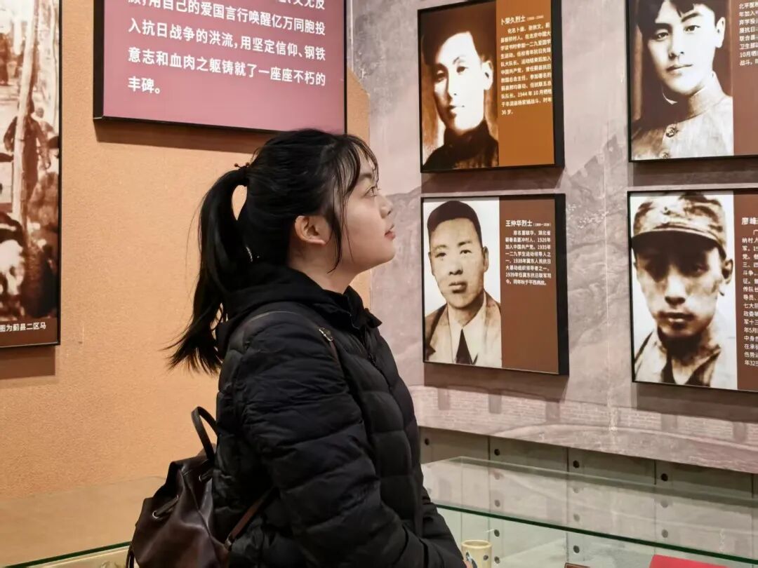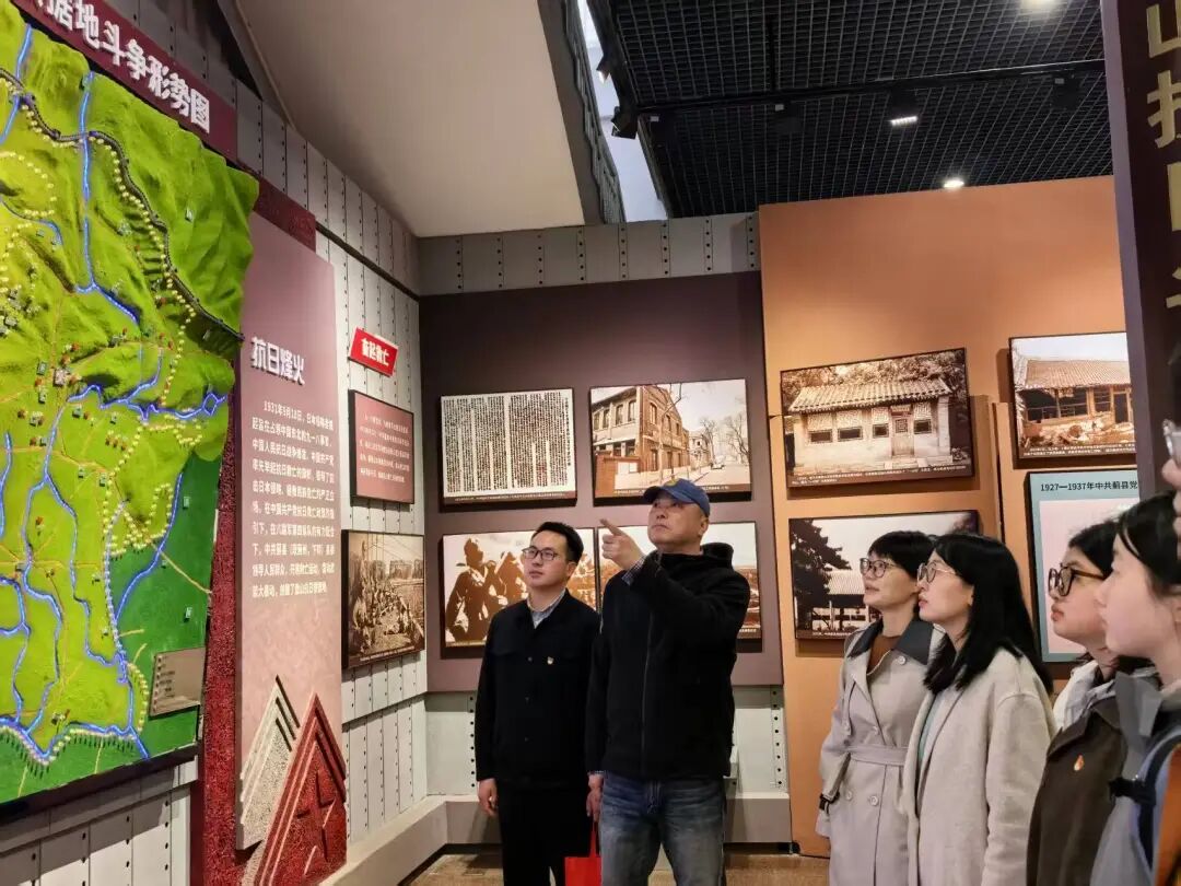 祭扫仪式结束后,师生党员参观了盘山革命纪念馆。通过馆内历史图片、文物实物、影像资料等,深入了解盘山抗日根据地的革命历史和先烈们的英勇事迹。学院党委副书记王琦结合馆内图文和革命文物,为全体人员讲授“清明祭英烈,薪火永相传”主题党课,系统梳理盘山抗日根据地的创建与发展历程,解读革命先烈的精神品格,引导党员深刻领悟初心使命的时代内涵。