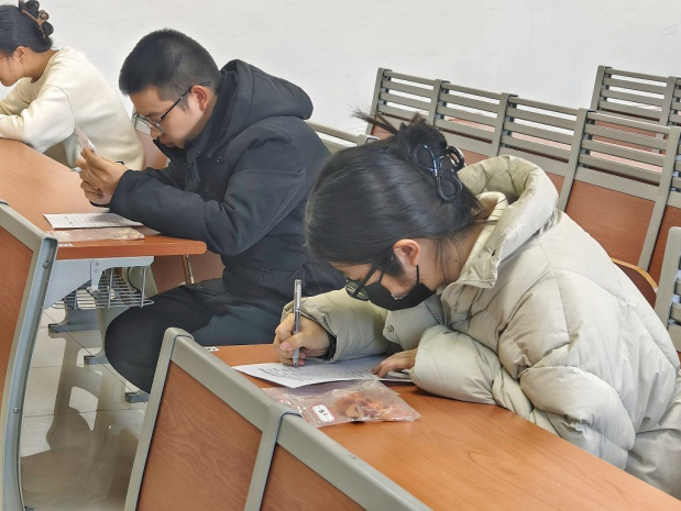 考试前,中药学院岐草协会面向全校学生举行了为期4天的中药饮片标本展,并邀请中药资源教研室张坚、李先宽老师进行指导,为等级考试的顺利开展奠定了坚实的基础。考试过程中,同学们专心致志,辨识中药时聚精会神,通过形态和气味等方面仔细分辨每一味中药,认真作答。考场内秩序井然,考纪严肃,监考人员认真负责,考生诚信作答。