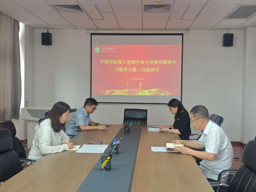 为持续深入推进深入贯彻中央八项规定精神学习教育走深走实,6月30日,天津中医药大学中药学院党委组织召开了“深入贯彻中央八项规定精神学习教育”第三次专题研讨会。学院党委书记任晓亮主持会议,学院全体领导班子成员参加会议并进行了交流研讨。