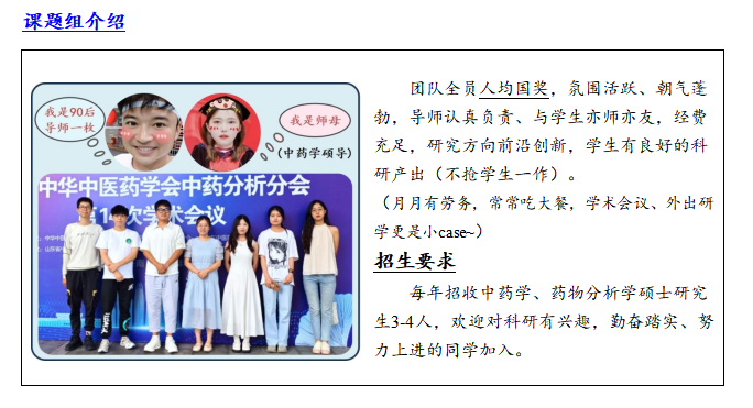 工学博士 硕士生导师 (中药学、药物分析学)