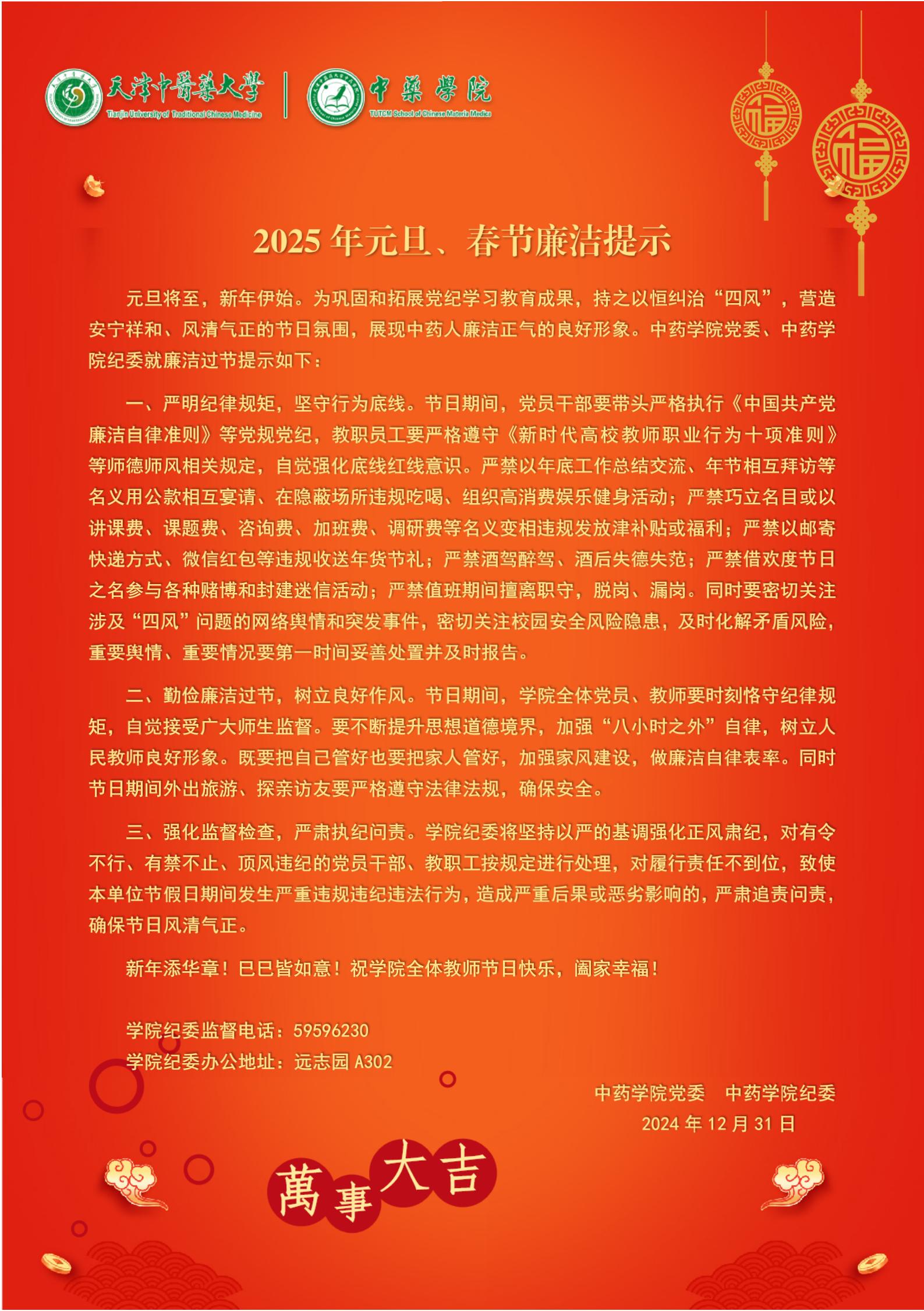 【廉政 | 节日“纪”语】 2025年元旦、春节廉洁提示