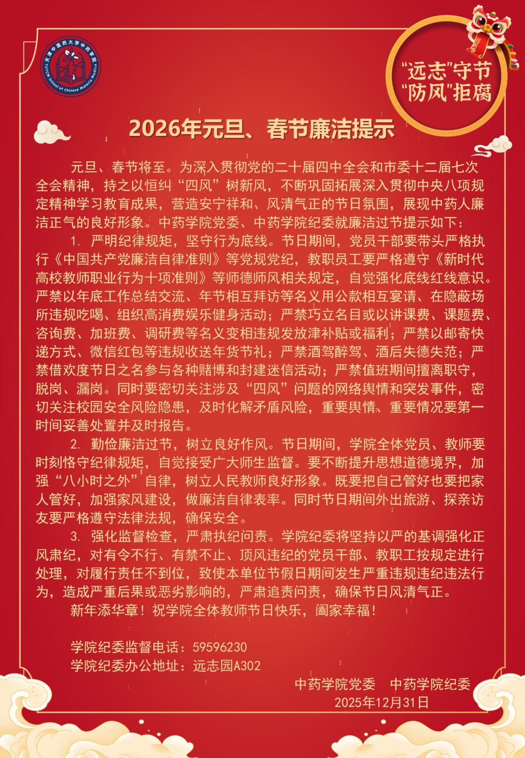 【廉政 | 节日“纪”语】 2026年元旦、春节廉洁提示